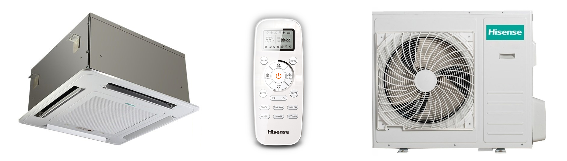 Кассетный кондиционер Hisense AUC-12HR4SAA/AUW-12H4SV рассчитан на работу в помещении площадью до 35 кв.м.