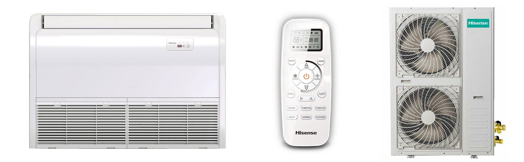 Напольно-потолочный кондиционер Hisense AUV-48HR4SC/AUW-48H6SE1 рассчитана на работу в помещении площадью до 140 кв.м.
