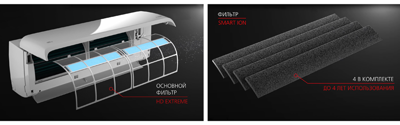 - SMART Air — автоматическое регулирование воздушного потока в 4 направлениях благодаря горизонтальным и вертикальным жалюзи с электроприводом.