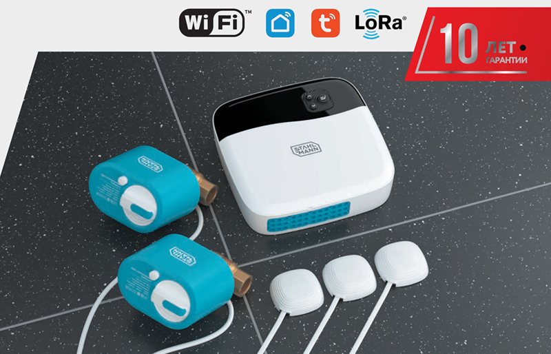 Краны STAHLMANN™ 3/4" 12В – 2 шт. Датчик STAHLMANN™ 001 – 3 шт. Модуль управления STAHLMANN™ Smart – 1 шт.