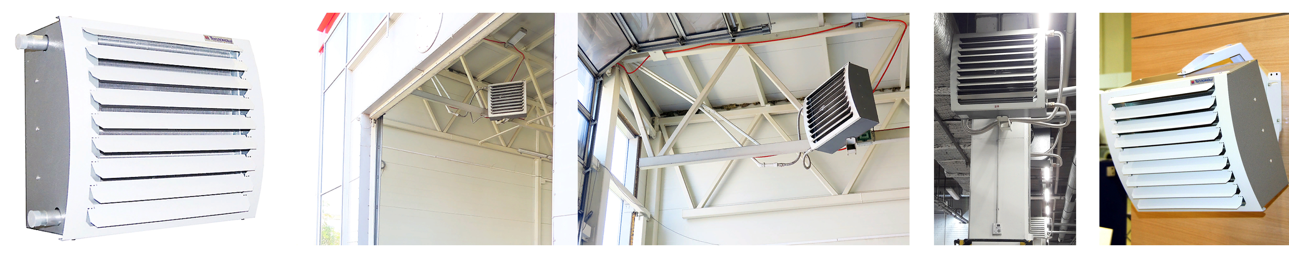 Тепловентиляторы с водяным источникам тепла применяются для основного или дополнительного обогрева помещений в промышленных, общественных и административных зданиях (магазины, стадионы, склады, ангары, автосервисы). Подключение производится к источнику отопления или системе ГВС. Способ монтажа горизонтальный или вертикальный — размещать можно как на стене, так и на потолке. Корпус выполнен из оцинкованной стали с полимерным покрытием серого цвета.