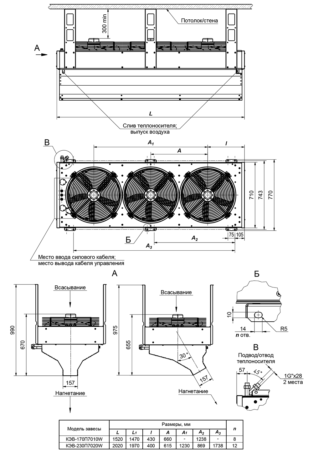 Водяная тепловая завеса Тепломаш КЭВ-170П7010W серии 700 Промышленная