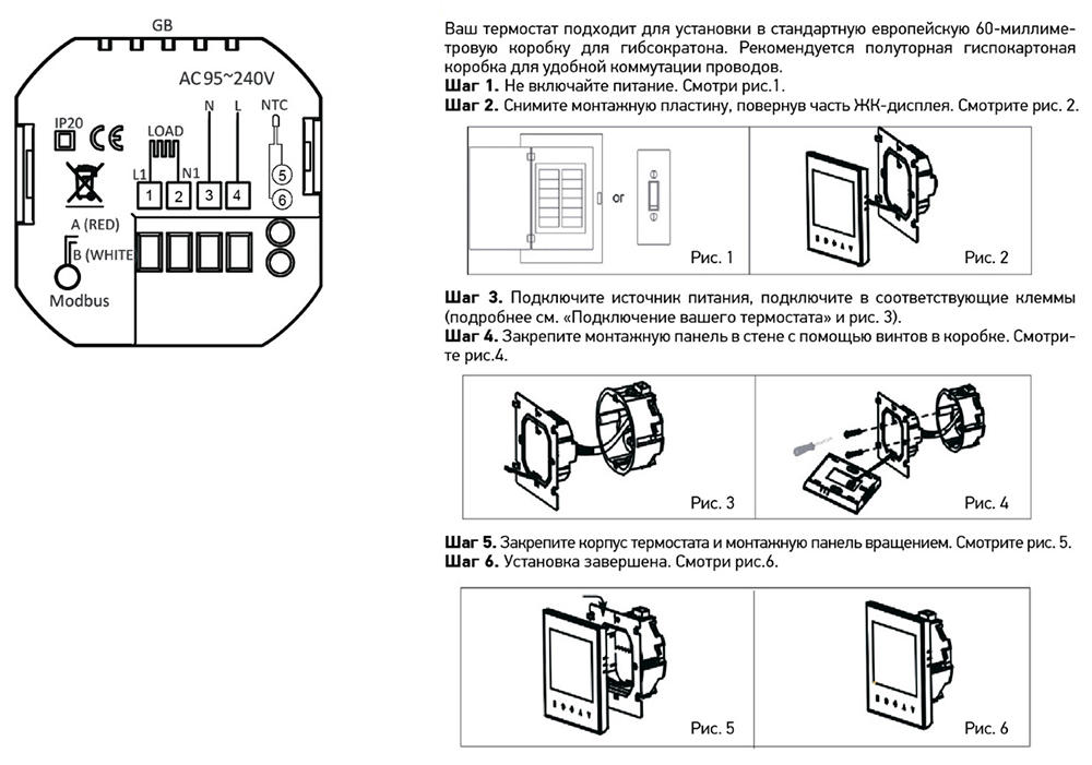 Стильный современный терморегулятор с ярким четким дисплеем. Имеет функцию Wi-Fi управления со смартфона. Устанавливается в стандартную монтажную коробку 60 мм.