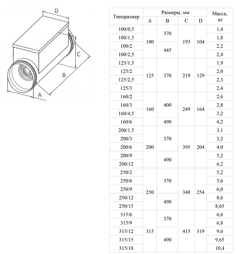 • Круглые канальные воздухонагреватели мощностью более 12 кВт выполняют с двумя равными ступенями мощности