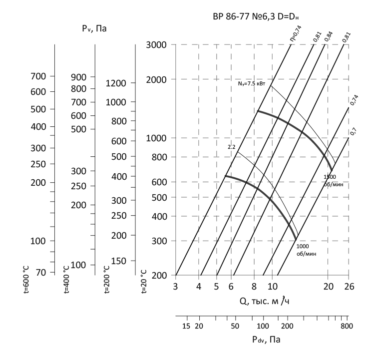 Радиальный вентилятор низкого давления ВР 86-77 / №6,3 / 2,2 кВт / 1000 об./мин. / Прав / 0°
